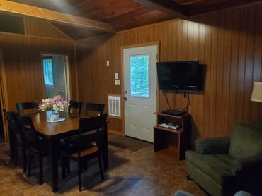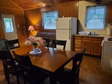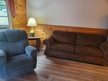 Small kitchenette equipped with all dishes, pots and pans. Microwave. Coffee Pot. Stove and Oven. Refrigerator. Living rooms.